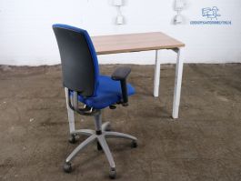 Handige kleine tweedehands werkplek van slechts 120 cm breed en 60 cm diep. Dit gebruikte bureau heeft een vierpoots wit frame en is handmatig te verstellen. Dit bureau is voorzien van een havanna blad en verkeert in goede staat.