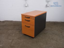 In dit tweedehands ladeblok kunt u netjes en veilig uw spullen opbergen. Het is antraciet van kleur met een beuken topblad en frontpannel. Dit gebruikte ladeblok is voorzien van 3 lades: 1 archieflade, 1 lade en 1 pennenlade. De afmetingen zijn 58 cm hoog, 44 cm breed en 80 cm diep. Dit wordt standaard geleverd zonder sleutel, deze kunnen we uiteraard wel voor u bij bestellen.