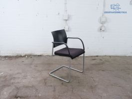 Deze tweedehands vergaderstoel van het merk va der Sluis kan gebruikt worden in elke vergaderruimte. De gebruikte stoel is zwart gestoffeerd, heeft een rugleuning van hout en een grijs sledeframe daaronder. Deze tweedehands vergaderstoel is ook eens stapelbaar en verkeert in nette staat.