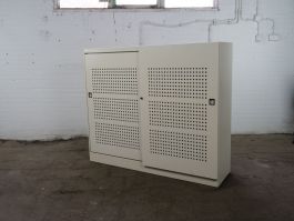 Deze tweedehands akoestische schuifdeurkast van VEPA biedt niet alleen een efficiënte opbergoplossing, maar helpt ook de geluidsisolatie in je kantoor te verbeteren. Het strakke, witte design zorgt voor een moderne uitstraling, terwijl de akoestische eigenschappen helpen om geluiden te dempen, zodat je werkruimte rustiger en productiever wordt. Deze kast is perfect voor het opbergen van documenten, kantooraccessoires en andere spullen die je uit het zicht wilt houden.