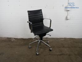 In deze tweedehands vergaderstoel kunt u comfortabel zitten te vergaderen met uw collega's. Deze gebruikte stoel is van PU kunstleer uitgevoerd, zwart van kleur en is kantelbaar. Dit type stoel is uitgevoerd met verchromde armleggers. Deze gebruikte stoel heeft een chromen onderstel en het is in hoogte verstelbaar. Daarnaast heeft deze tweedehands vergaderstoel wielen en het is verrijdbaar.