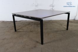 U kunt prettig met het hele team vergaderen aan deze tweedehands vergadertafel. De tafel bestaat uit een zwart frame, deze is handmatig in hoogte verstelbaar, zodat u de hoogte naar eigen wens kunt aanpassen. Op dit frame ligt een antraciet eiken blad van 160 cm breed en ook 160 cm diep.