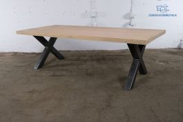 Vergadertafel | Tweedehands | Industrieel | White wash eiken | Stalen kruispoot | VT221