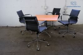 Stijlvolle tweedehands vergadertafel van Vitra met nieuw oranje blad en verchroomd frame. Perfect voor vergaderingen, overleg of creatieve sessies.