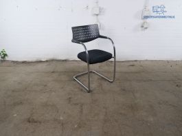 In deze tweedehands vergaderstoel van het merk Vitra Visavist kunt u prima zitten tijdens een vergadering op kantoor. De zitting van de deze gebruikte stoel is met zwart stof bekleed en de rugleuning is geperforeerd. De stoel heeft een verchroomd sledeframe met zwarte armleggers. Verder verkeert deze tweedehands vergaderstoel in nette staat.