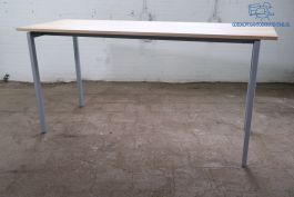Breng stijl en functionaliteit samen met deze royale tweedehands kantinetafel van Voortman. Het halifax blad en het zilvergrijze metalen frame geven de tafel karakter en stabiliteit. Met een verhoogde hoogte is dit model ideaal voor staand gebruik of in combinatie met barkrukken.