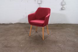 Wachtkamer stoel | Tweedehands | Rood gestoffeerd | Houten poten | OS269