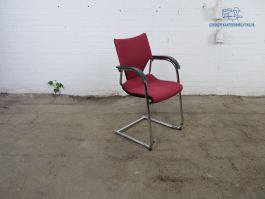Deze tweedehands vergaderstoel is van het merk Wilkahn. De gebruikte stoel is donkerrood gestoffeerd met een verchroomd sledeframe daaronder. Deze tweedehands vergaderstoel is stapelbaar. Let wel op: beschadiging op de rugleuning (zie foto)
