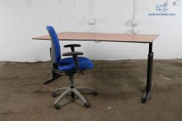U kunt prettig aan het werk aan dit tweedehands handmatig verstelbare Lensvelt wingbureau. Dit bureau is uitgevoerd met een zwart T-poot frame en een kersen blad, die voorzien is van inkepingen t.b.v. kabeldoorvoer. De afmetingen van dit bureau zijn 180 cm breed en 90/80 cm diep.
