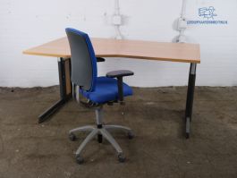 U kunt prettig zitten werken aan dit tweedehands Mibra wingbureau. Het bureau is voorzien van een beuken blad, met de wing aan de linkerkant. De afmetingen van het blad zijn 180 cm breed en 100/80 cm diep. Hieronder zit een opvallend antraciet frame, dat handmatig in hoogte verstelbaar is.